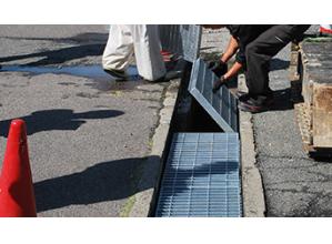 道路側溝や集水桝用の鋼製(こうせい)格子蓋。...