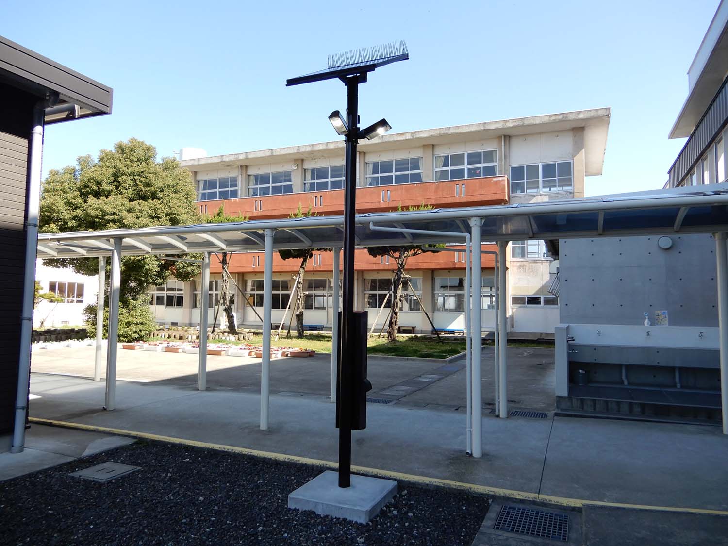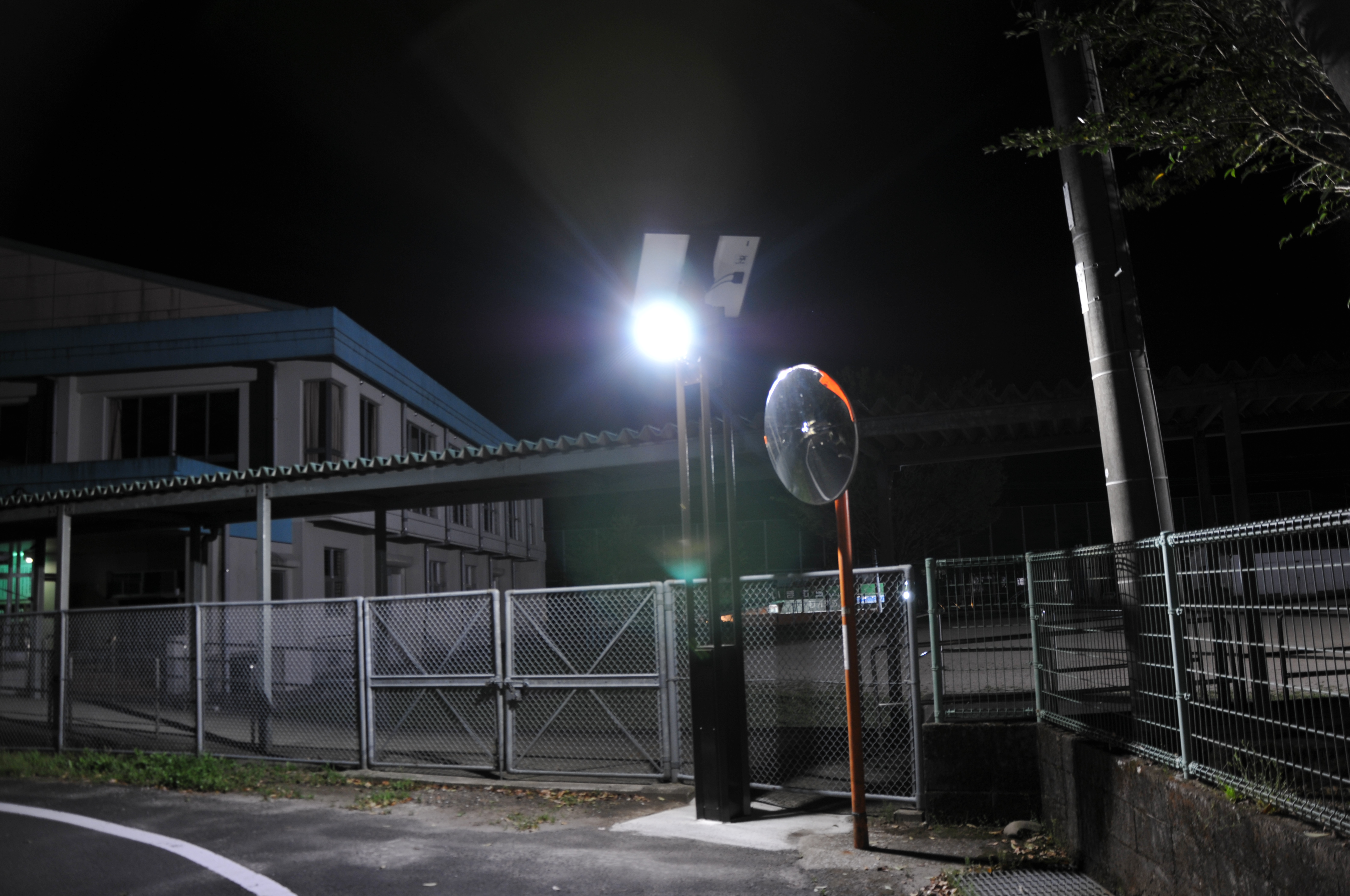 防災・防犯効果が期待できる、ソーラー充電とバッテリー蓄電のLED街路灯。