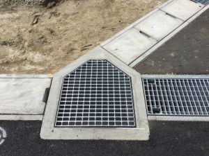 道路側溝との接続箇所に使用されるプレキャスト集水桝。二次製品側溝に合わせた製品幅で、すっきり接...