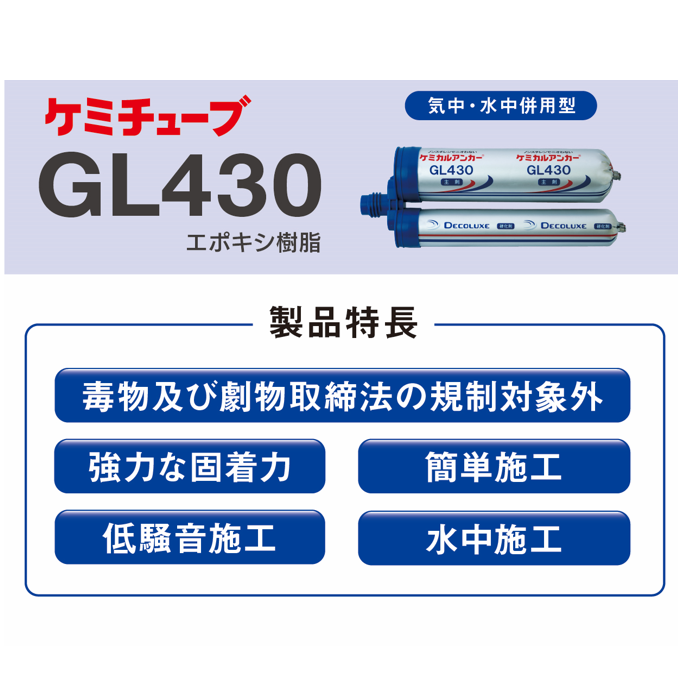 構造物施工管理要領(発行:㈱高速道路総合技術研究所)エポキシ樹脂規格に適合(ケミチューブGL430)