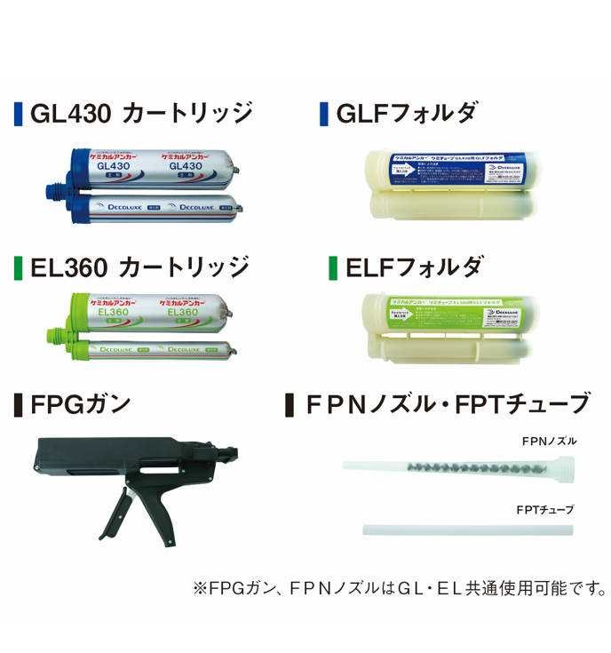ケミカルアンカー 環境配慮型カートリッジ ケミチューブ GL430・EL360