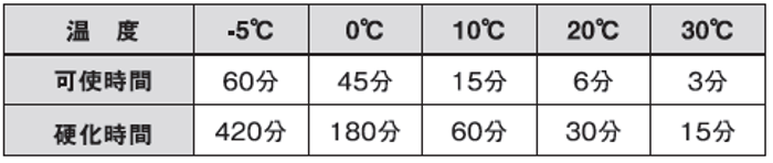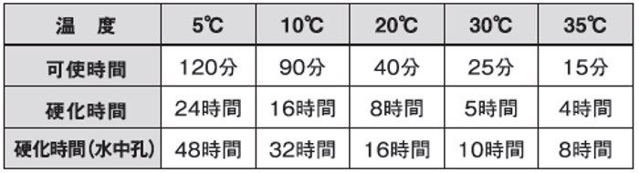 20℃・30分で硬化し、エポキシ樹脂製品に比べて早い施工が可能。
