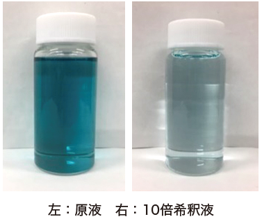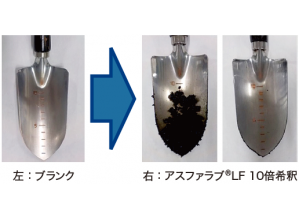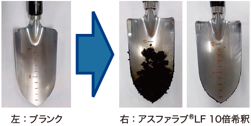 付着防止効果に優れた低泡性のアスファルト合材付着防止剤である。水に希釈して使用する製品であり、希釈液は泡立ちが非常に少ない青色透明液体である。