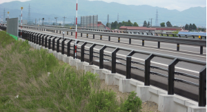 この改訂により、プレキャストL型擁壁、ブロック積擁壁、補強土壁、軽量盛土、既設擁壁等へのガードレール設置が従来方法では難しくなり、このようなことから、全ての擁壁に設置できるよう分離構造とし擁壁設置後に、擁壁上に設置できるよう改良された。