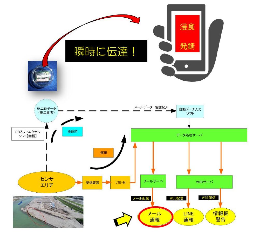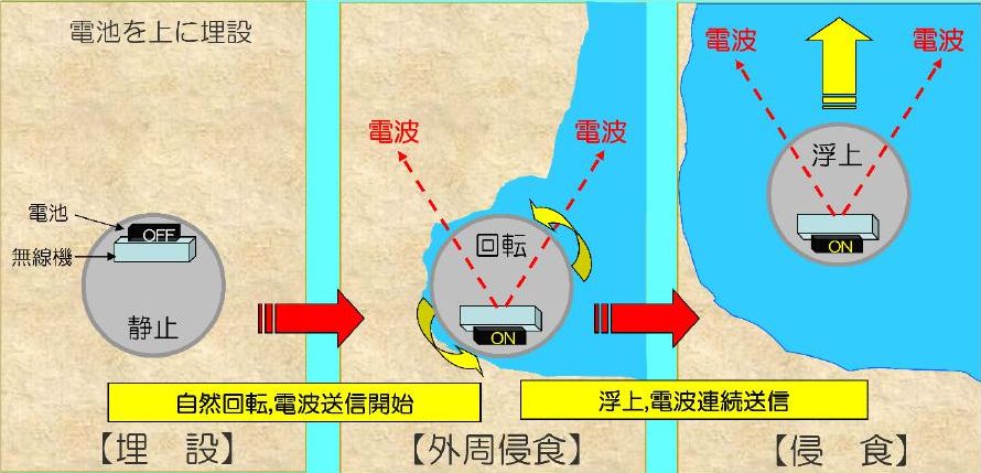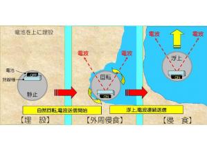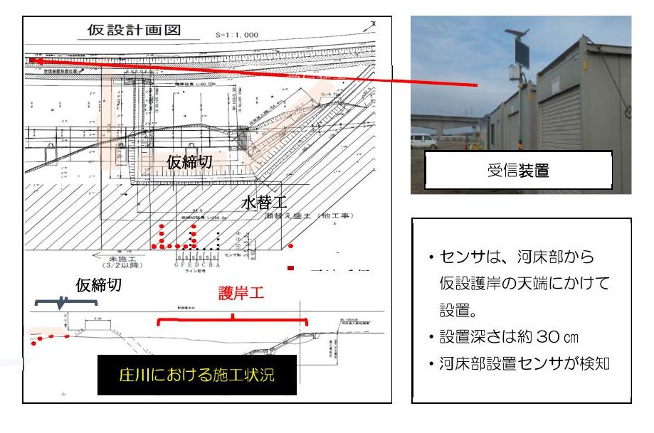 1)センサは無線機内蔵のカプセルセンサで、24時間連続監視。夜間・降雨の影響がない。
