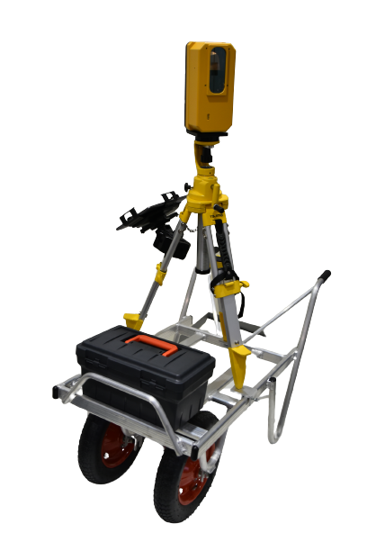 地すべり、地盤沈下、法面、崩落現場など人の立ち入れない個所を安全に誰でも計測が可能。繰り返し精度は±5mmと高精度。専用台車に載せることにより移動がスムースに行え、ワンマン計測が可能。