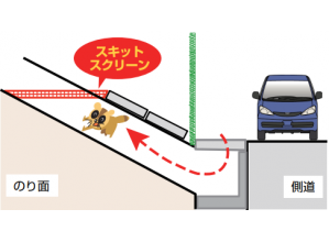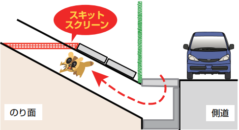 ・小動物の侵入通路となっていた、たて排水溝を塞ぎロードキル対策に有効。