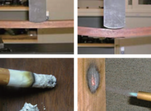800℃のタバコの火やライターでも燃えない素材。1000℃の炎で30分燃やしても、数ミリが炭化するのみ。高密度な繊維には落書きなどの油分が浸透しにくいため、いたずら防止効果も期待できる。
