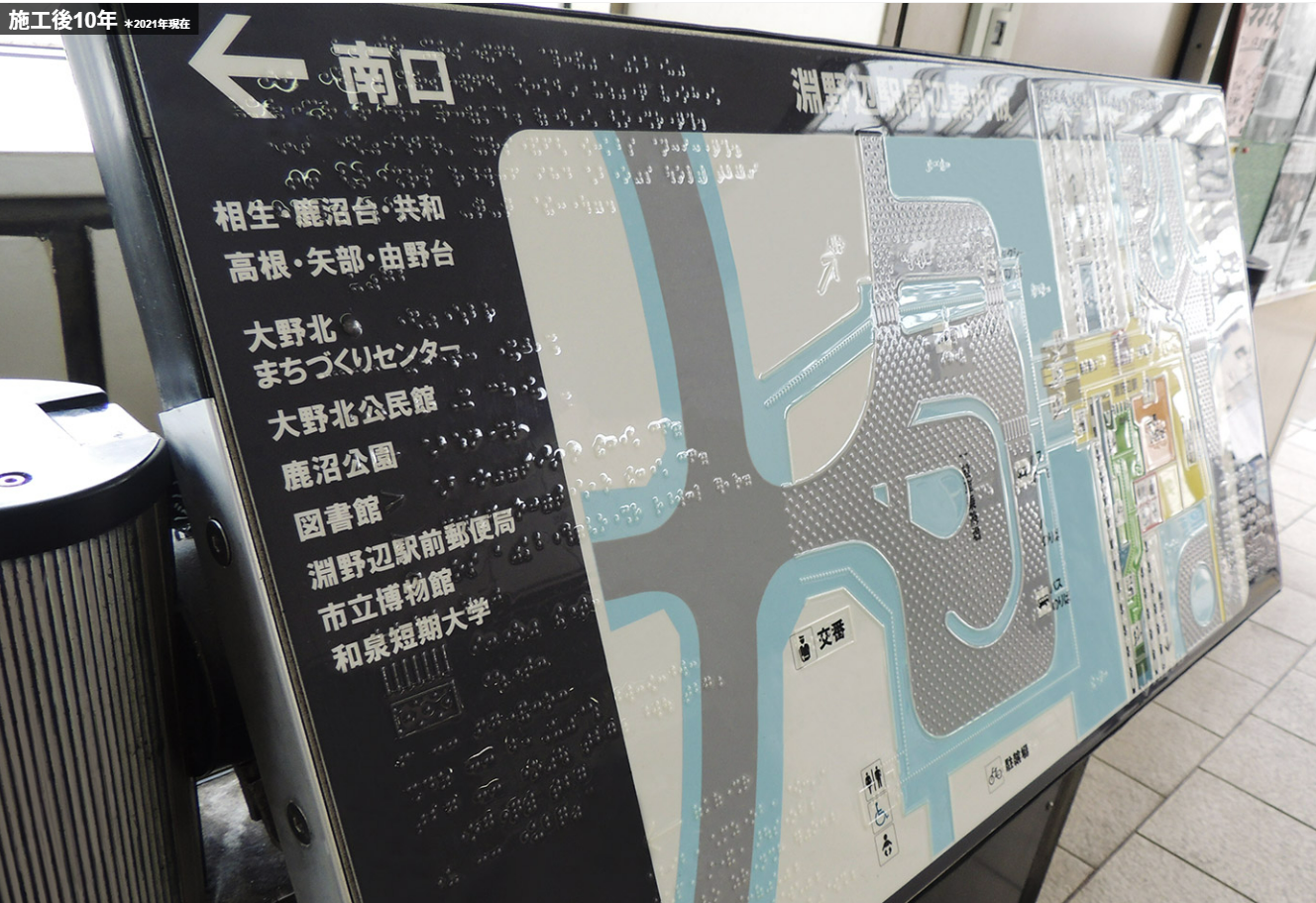 ユニバーサルの観点で触感による情報を加えることが可能。同時に電子線硬化型樹脂コーティングの高耐久力により、点字や触知図の突起も保護する。
