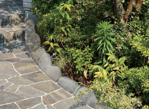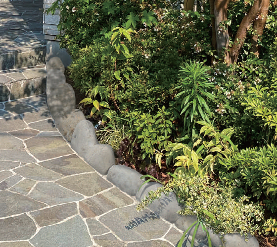 ワイルドな石積みを施工しやすい形にして提供。割肌の石の力強さを感じ取れる製品。
