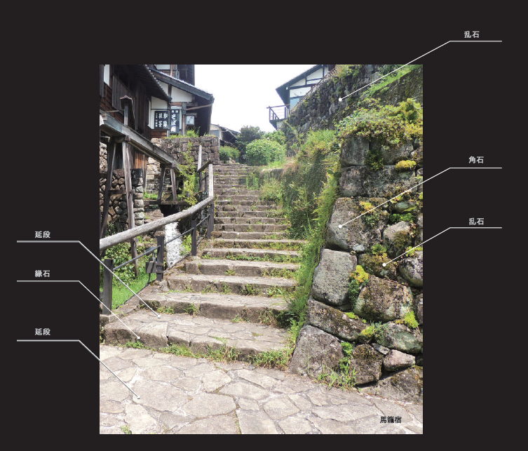 表土層から採掘する木曽石の表面は気泡状のザラ目が特徴であり、年月が経つにつれてより一層豊かな表情を醸し出す。多孔質である木曽石のザラザラとしたテクスチャは、敷石、階段石、飛石、沓脱石等に適した素材である。