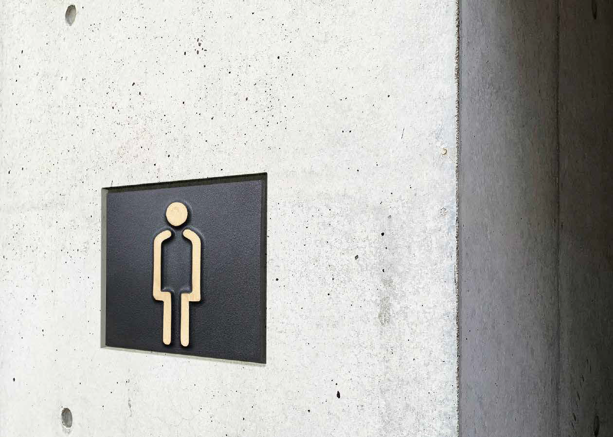 職人の丁寧な手仕事で立体的に作り上げたピクトサインタイル。焼き物の素地の温もり感は公共性の高い空間(屋外共用トイレ、車椅子用トイレ等)で存在感を発揮する。
