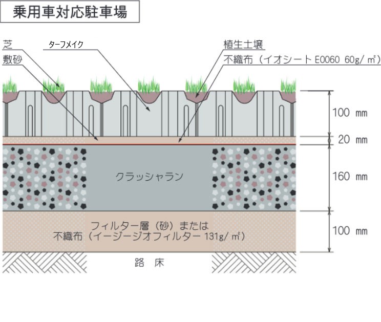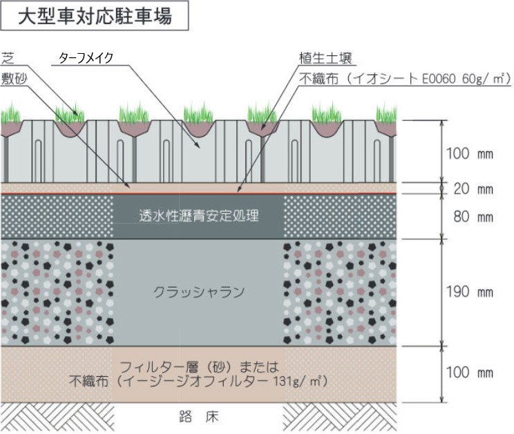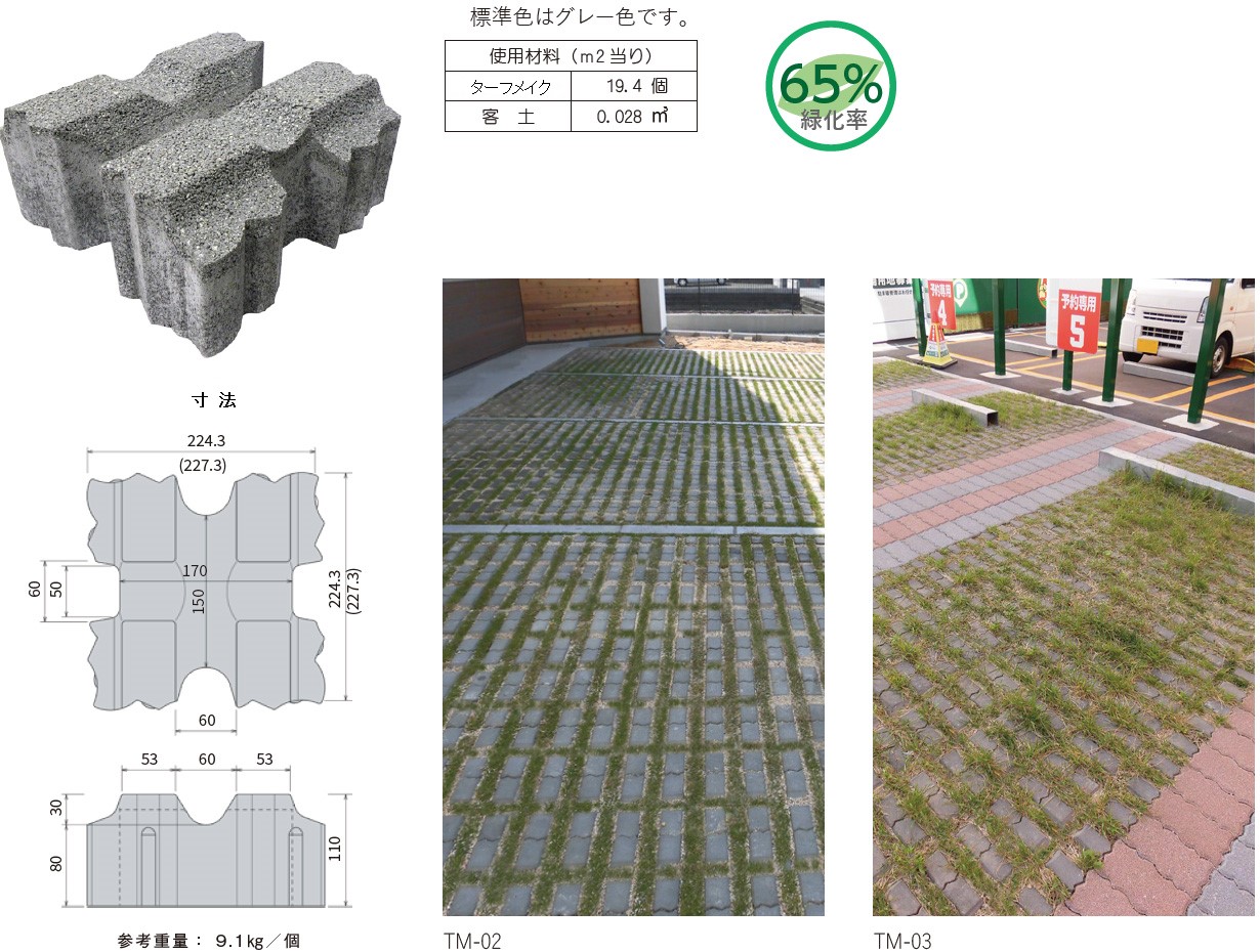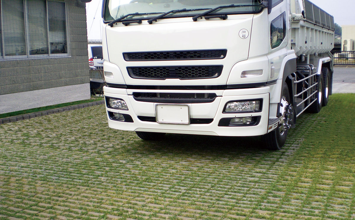 大型車の走行に耐える緑化ブロック。 工場や流通施設などの駐車場の緑化に最適。