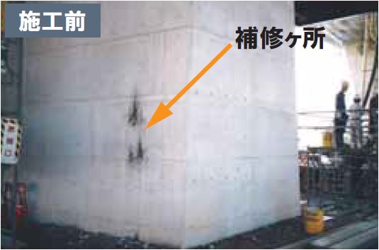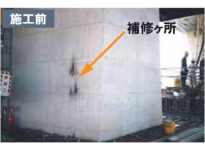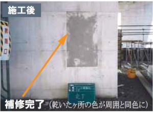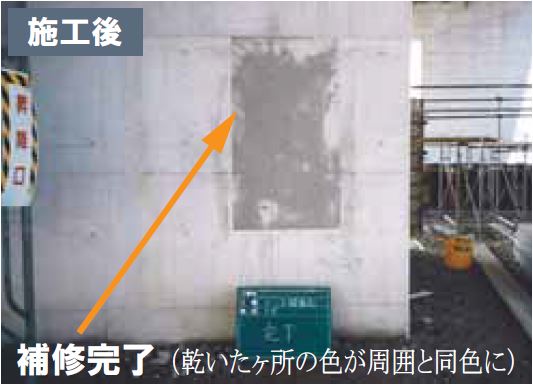 コンクリートの質感そのままに補修可能。ペースト状で塗やすく、豆カラーで補修箇所のコンクリートに色を合わせることも可能。また、セメント系なのでコンクリートとのなじみも良好。