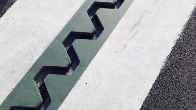 伸縮装置のつなぎ目は凹凸構造で、橋面排水されるため、良好である。二次止水の機能を備えている。