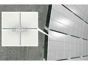 タイルの固定方法を接着剤と金具に変えたことにより、接着剤の接着強度が低下した場合でもタイルは金...