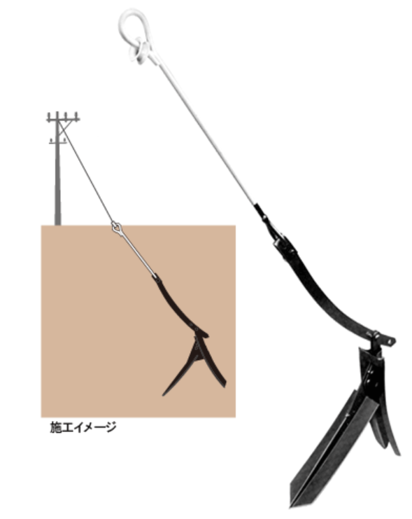 電力、通信、テレビ共聴、営林などの事業に広く使用される支線アンカー。土壌をいためず施工ができる...