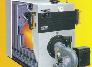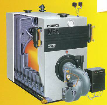 ボイラ本体は耐食・耐熱性共に優れた高級鋳鉄製で長寿命。鋼板製に比較して耐久性に富み、設置後の能力アップも可能で半永久的に使用可能な省資源形で、ライフサイクルコストが少ない経済性にすぐれたボイラである。