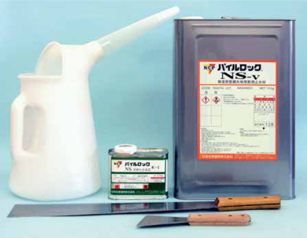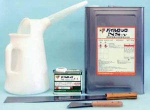 鋼矢板の止水性をより高めるために開発された止水材。鋼矢板の継ぎ手部に塗布することにより護岸工、締切り工、廃棄物処理場工、根切り工、貯水池の止水工などで鋼矢板の止水効果を向上させる。パイルロックには、NS-vおよび速乾型の2種類をラインナップしている。 パイルロックNS-vは吸水性の分子鎖を有するウレタン樹脂からなる無溶剤型止水材で、塗膜の耐久性が高く仮設・本設を問わず広く使用できる。また、パイルロック速乾型は、含まれる高吸水性ポリマーが吸水・膨潤する溶剤型で、仮設用途に適している。
