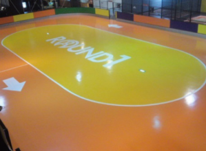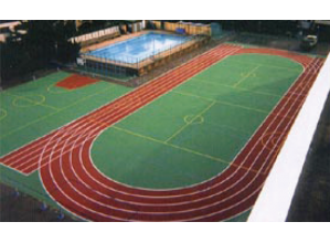 ゴムチップをウレタン樹脂バインダと混合して敷設する弾性舗装である。テニスコートやジョギングコー...