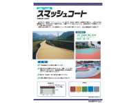 耐久性カラー舗装材「スマッシュコート」は、耐久性・耐水性・耐熱性・耐摩耗性に優れた、一液性の水性無機質塗料である。呼吸性を持った塗膜を形成し、剥離やフクレが起こらないため、長期経過後も下地補修なしでカラーの塗り替えができる。豊富な色彩が選択でき、また湿潤時もスリップ防止効果に優れているので、歩道の景観舗装にも最適。