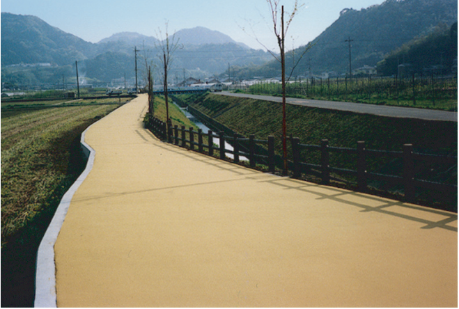 アクリル系樹脂舗装『フィットコート』は、アクリル系樹脂バインダと珪砂等の骨材を混合したものを塗...