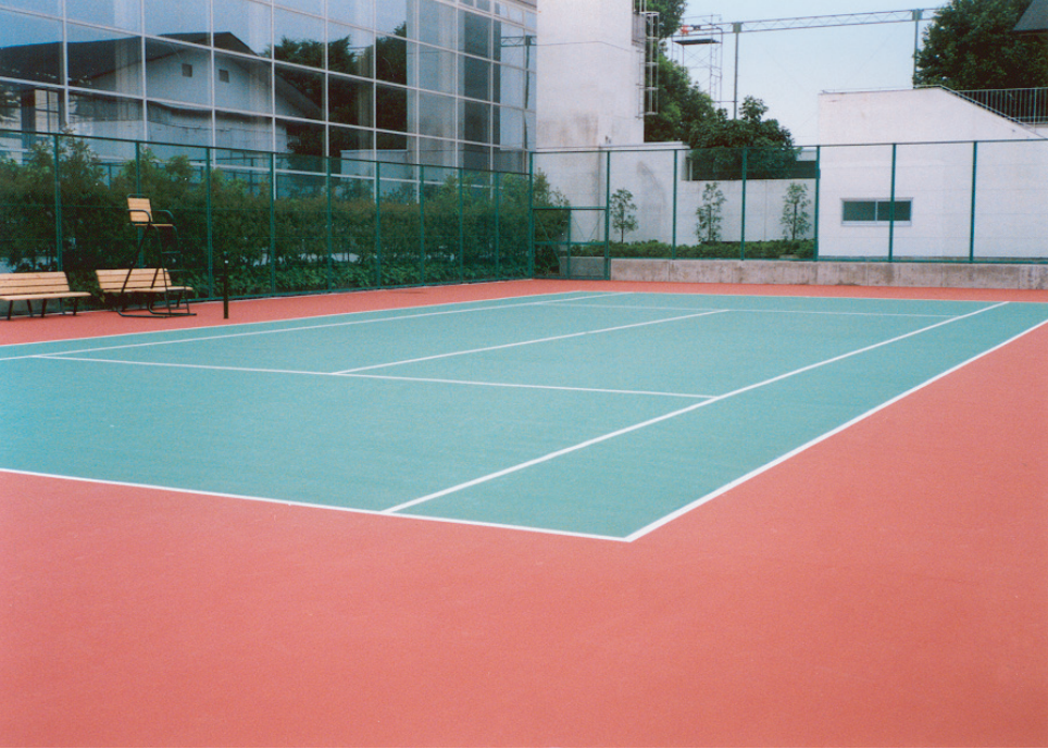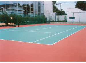 ゴムチップをウレタン樹脂バインダと混合して敷設する弾性舗装である。テニスコートやジョギングコー...