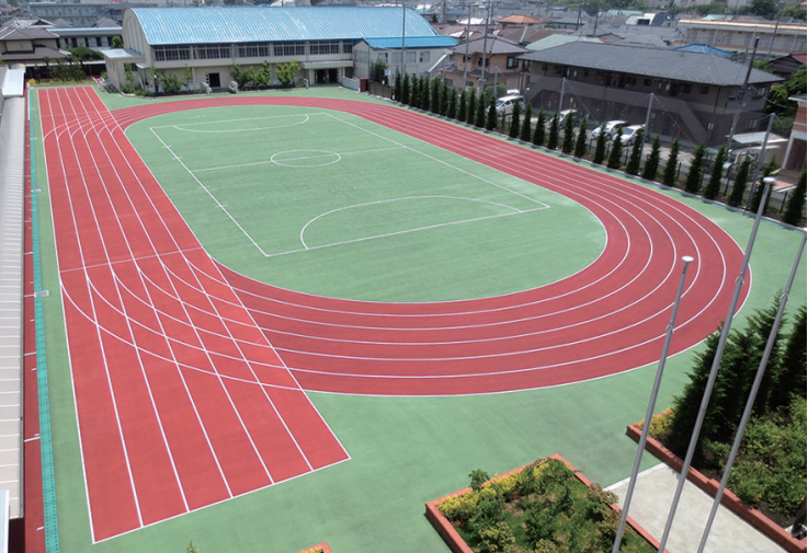 アクリル系樹脂舗装『フィットコート』は、アクリル系樹脂バインダと珪砂等の骨材を混合したものを塗...