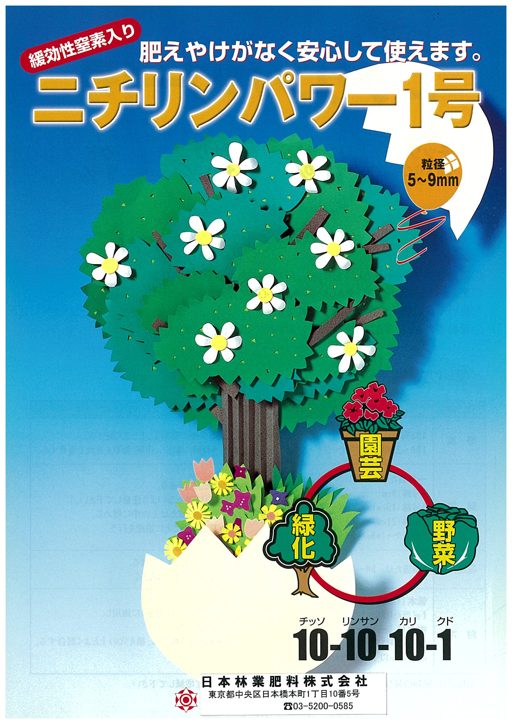 緑化専用肥料。芝生・緑化木・のり面緑化用に設計された化成肥料である。N:P:K=15:15:1...
