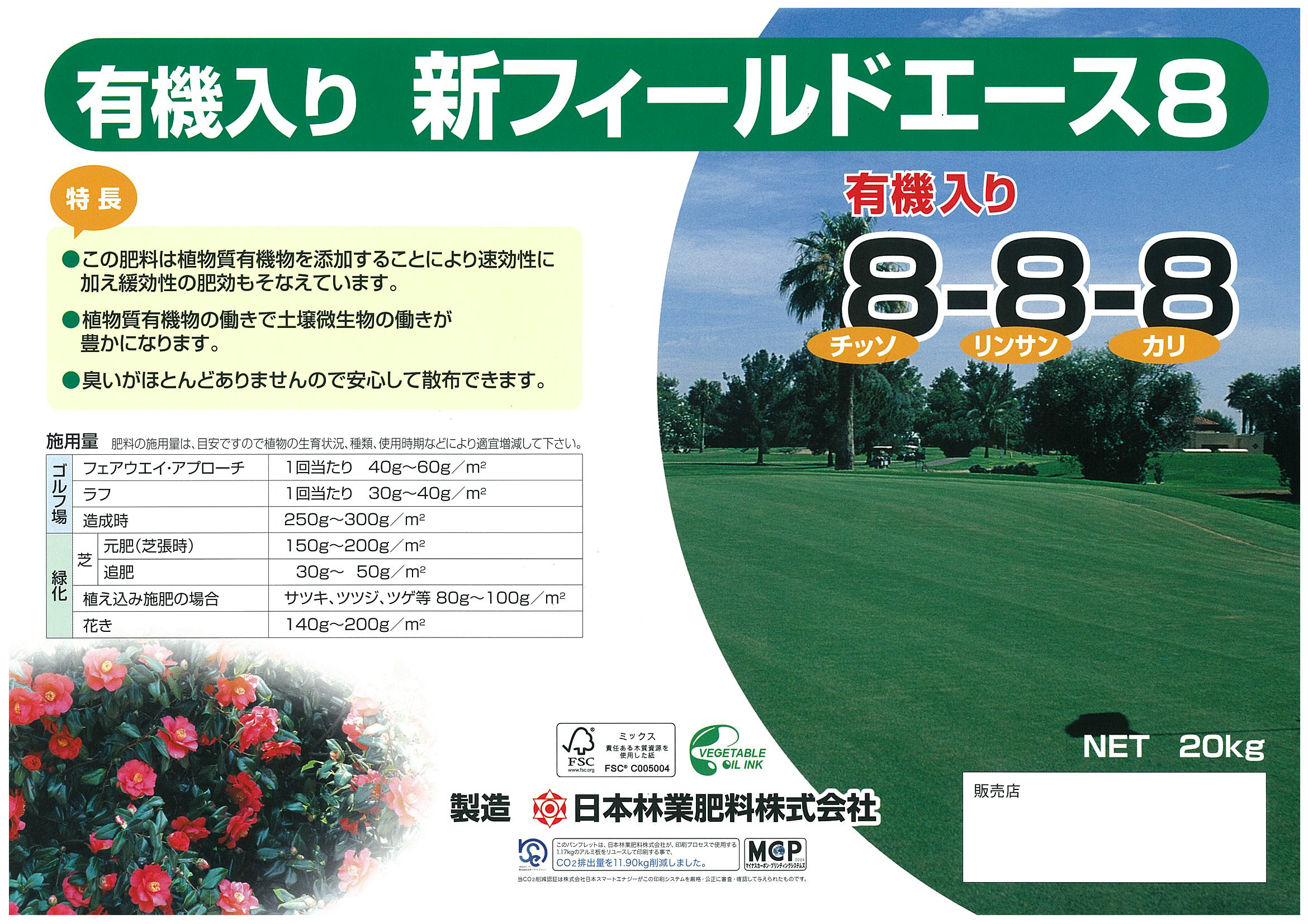 緑化専用肥料。芝生・緑化木・のり面緑化用に設計された化成肥料である。N:P:K=15:15:1...