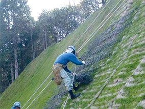 アーチ状のプラスチックネットを利用したシカの食害対策工法。シカの食害・踏み荒らしから植生を保護する。プラスチック製のため腐食に強くあらゆる自然条件に対して十分な耐久性を有し、しかも軽量なため施工性に優れている。