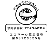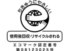 ・エコマーク 類型番号:123 認定番号:08123025 類型名:建築製品(内装工事関係用資材)Version2.6 有効期限:2022年12月