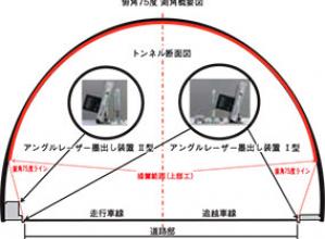 デジタル角度計を採用した、自立式小型軽量な墨出し装置を用いレーザー照射により墨出し位置特定に変更したことで、品質の向上・省人化が図れる。