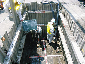 マンホール土留(アルミ製水圧式スプリング内蔵四方張り土留)
