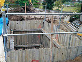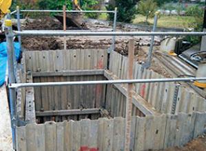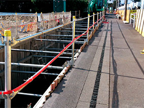 工事用フェンスや鋼板などによって現場を囲い、第三者の安全を確保。材質は亜鉛メッキ鋼板を使用した...