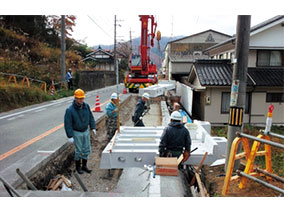 プレキャスト製品を使用することで、仮設工事が少なくなり、工事期間の短縮を図る事が可能。