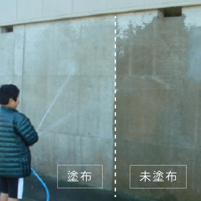 Sクリートガードはナノ粒子のシラン・シロキサンを主成分とした高機能な防水材である。塗布後素早く浸透して、コンクリートやモルタルの表層に超撥水層を形成する。同時に、内部に深く浸透して空隙を充填し、緻密な吸水防止層を形成する。耐候性にも優れ、長期間に渡り高い耐久性で塗布面を保護する。