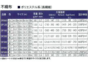 SPマット「地盤安定・吸い出し防止・洗掘防止材」厚さ0.7mm~5mm 重量60g/m2~50...