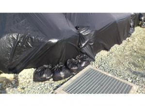 900時間の耐候性試験後も400N/5cm以上の強度を保持。長期工事の土のうや緊急災害時の備蓄用、耐候性大型土のうの隙間埋めとして使用できる。