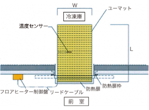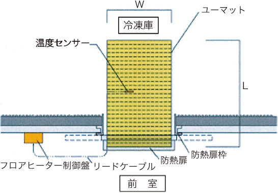 ユーマットは、業務用低温冷凍庫用のフロアヒーターで、性能的に安定した棒状非金属カーボン発熱体である。表面温度は均一に、すばやく温まり、温度上昇とともに出力を抑える、安全で効率的な省エネヒーターである。 床の凍結を防ぎ、作業員の転倒防止やフォークリフト・運搬機のスリップ事故を防止に役立つ。