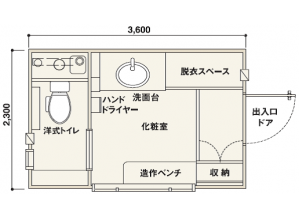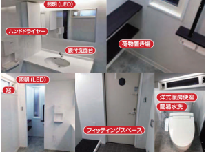 ユニバーサル個室付男女兼用簡易水洗トイレユニット(床下便層4,600L内蔵)。...