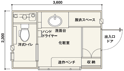 ユニット型 W:1,853mm × D:1,226.5mm × H:2,255mm