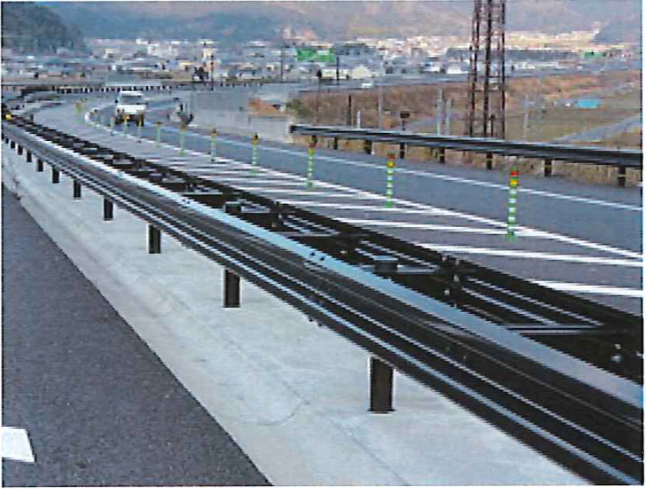 2.夜間は、ボルト頭部(車道側)に再帰反射塗装を実施しているため、車のヘッドライトで光る。