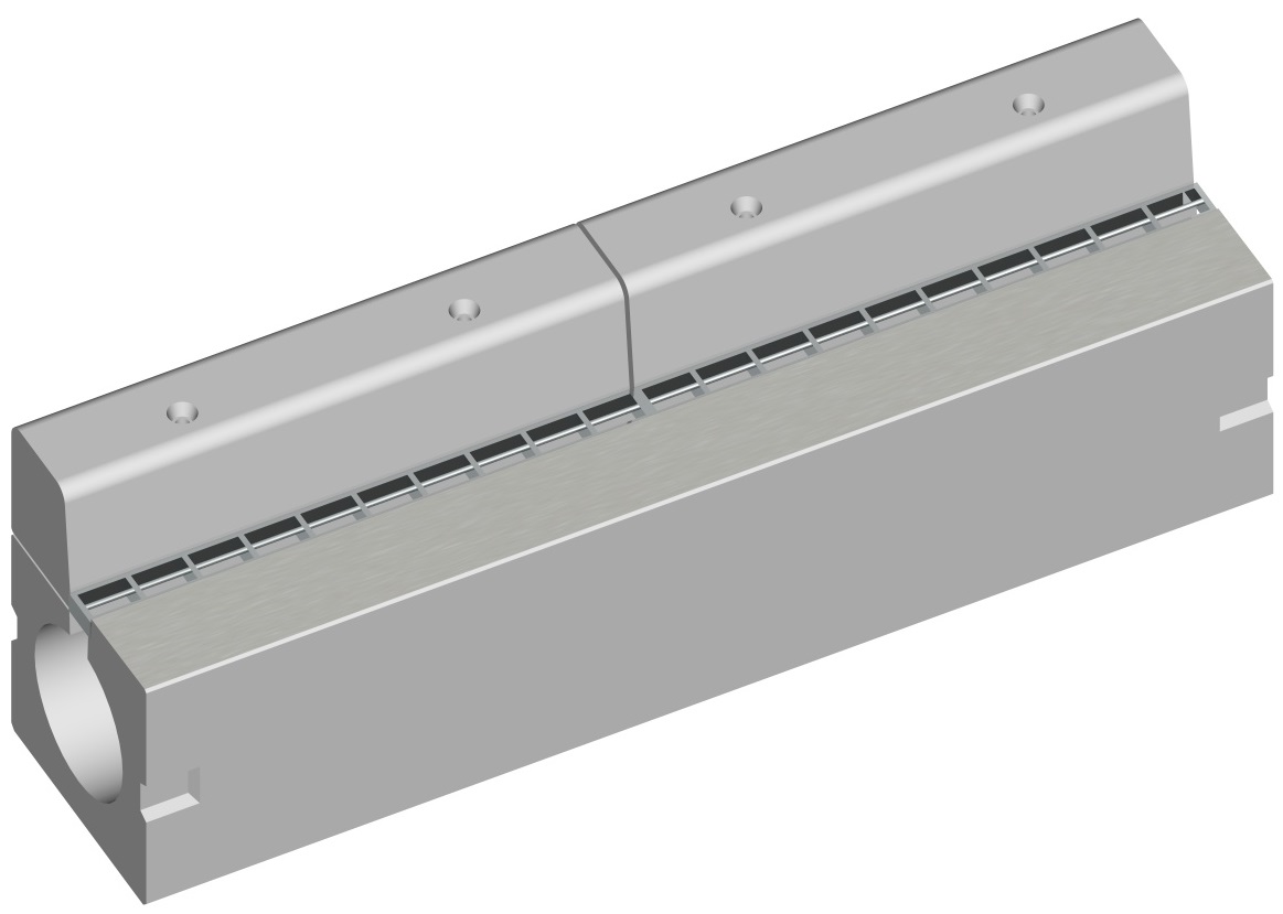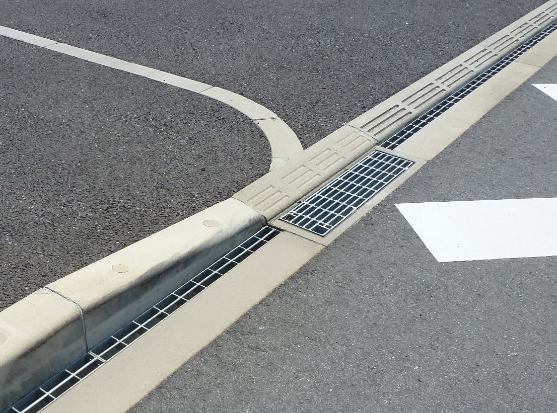 製品上部に梨地模様加工を設けることにより、すべり抵抗値を向上させスリップ事故の防止を実現した。製品上部中央の広いグレーチング開口部により、排水性に優れ、同開口部から専用器具による清掃が容易にできる。排水性舗装にも対応する。