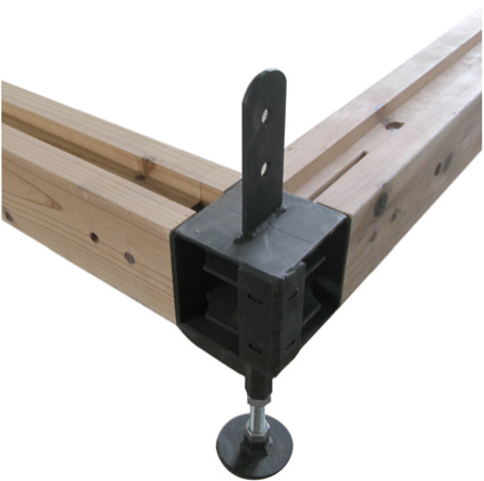 木造建築の柱脚(基礎・土台・柱)・柱頭(柱・桁・梁)の高耐力接合金物。最大6方向からの部材が緊結できる。柱接合部のホールダウン金物が不要。