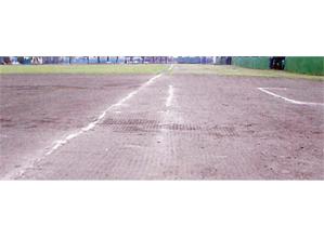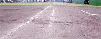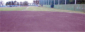 3.グランド使用中は土粒子を細かくする(比重が軽くなる)ため土が舞う状態になるが、散水することにより防塵し、改良土も膿む心配はない。