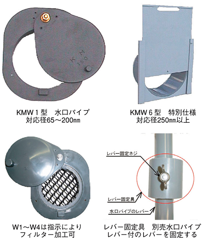 雨水排水管など水抜管の水路側に取り付け、水路の増水時に逆流を防ぐ。簡易に使用することを目的に考...