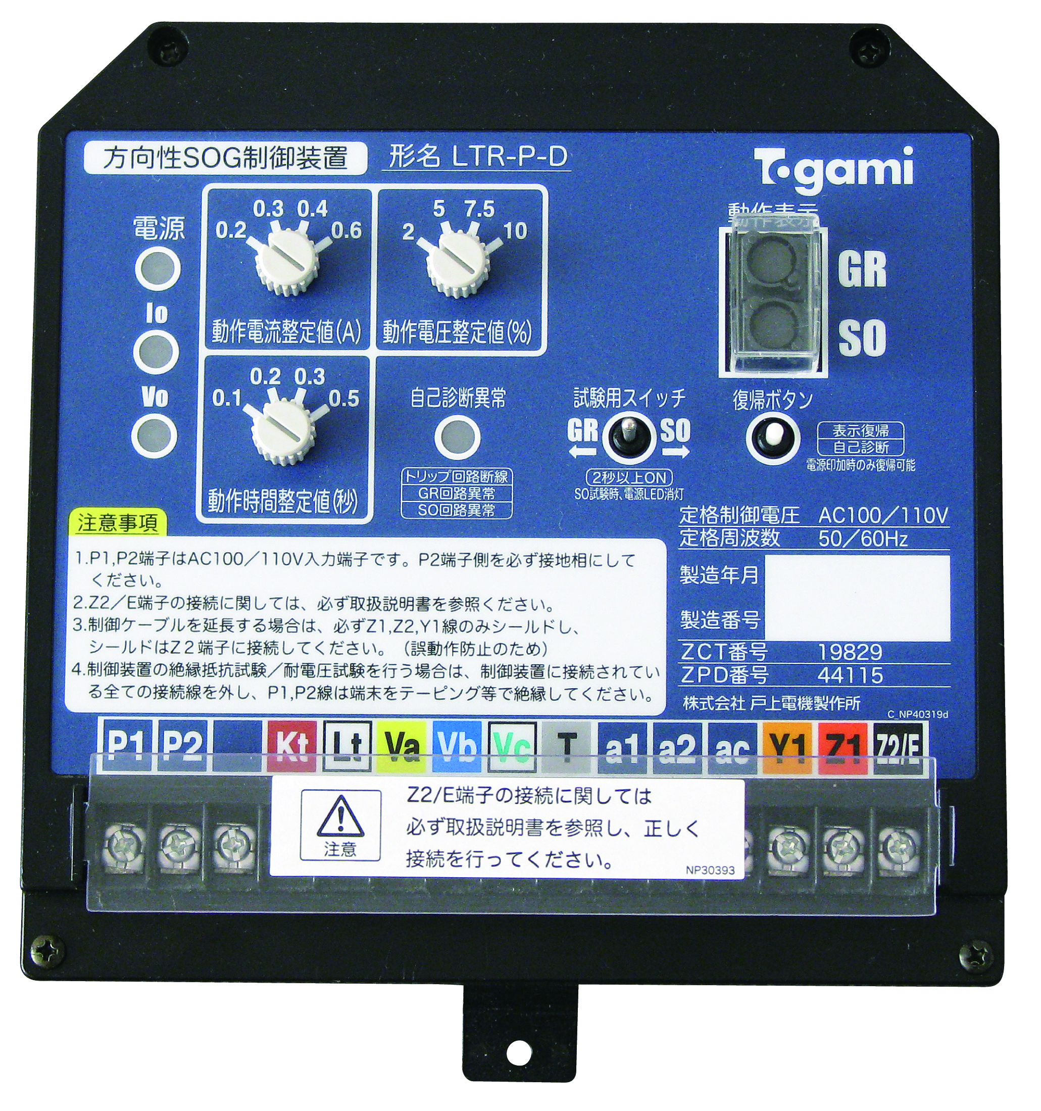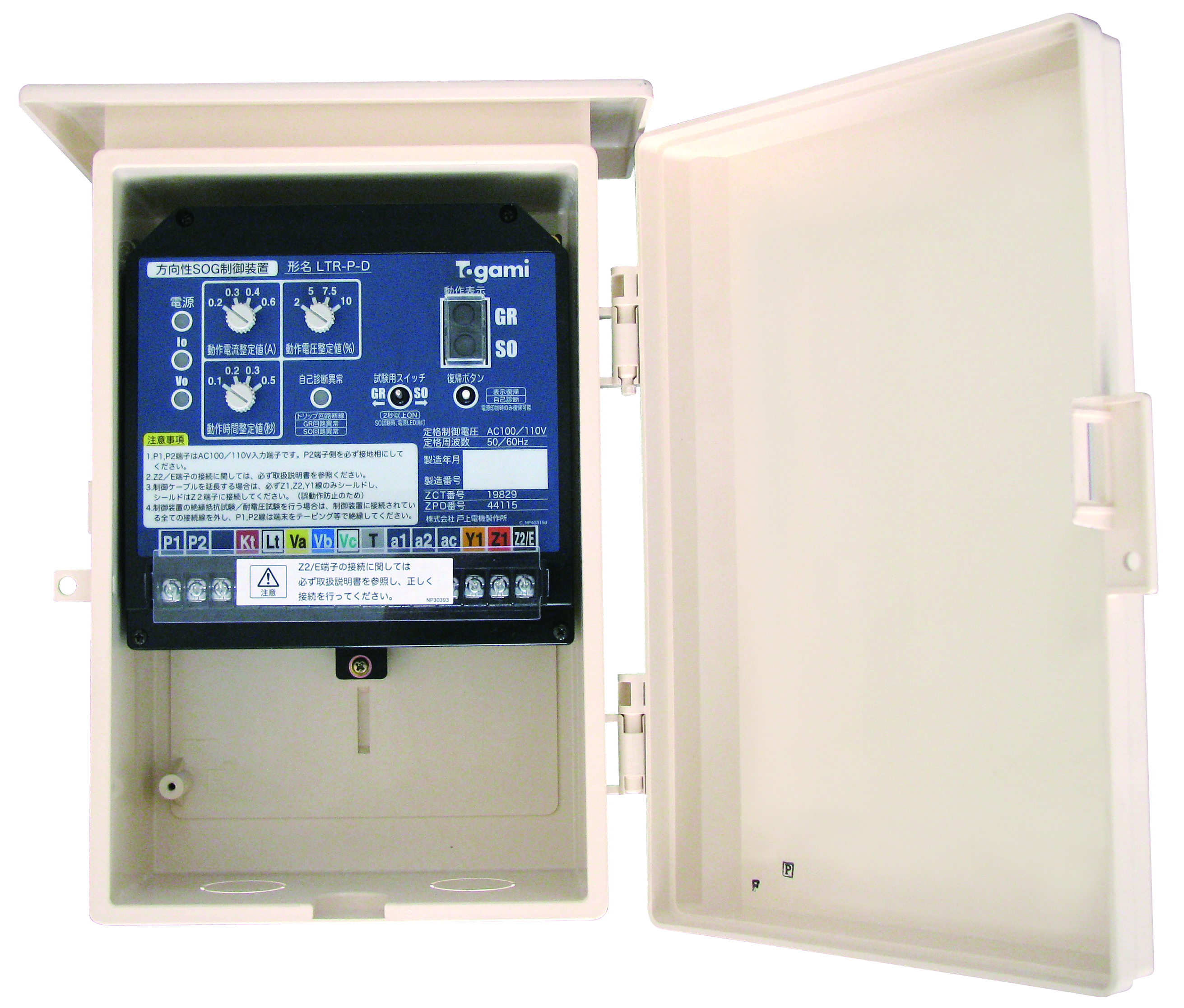 ②開閉器のトリップ回路およびSOG制御装置自体の検出回路を常に診断し、万一異常が発生した場合は表示灯および警報接点が作動するため万一の時の早期対応、日常点検に活用可能。
