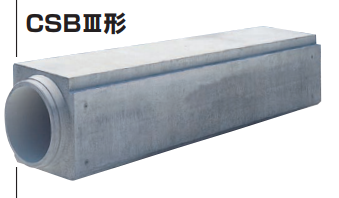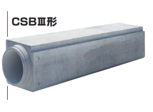 CSB(Centrifugal Super Box-culvert)は、遠心力成形により管と基礎を一体化して現場での施工の省力化、工期短縮のためにプレキャスト化したもので、かつ遠心成形のため、均一な品質で高強度な製品。CSBは使用目的及び自動車荷重と土かぶりにあわせて、Ⅰ形からⅣ形までをシリーズ化。