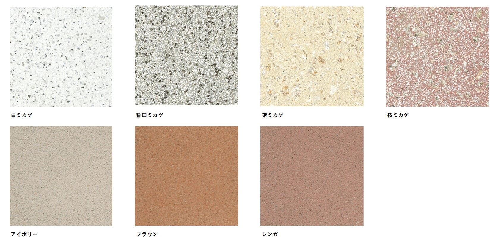 白ミカゲ、稲田ミカゲ、錆ミカゲ、桜ミカゲ、アイボリー、ブラウン、レンガ